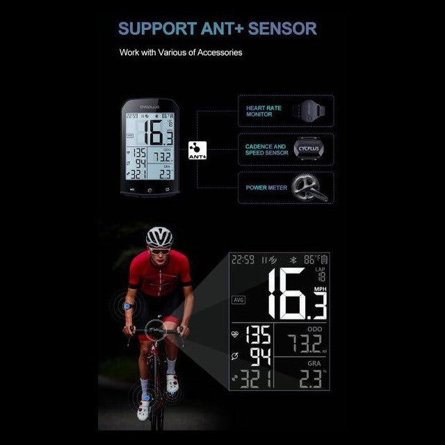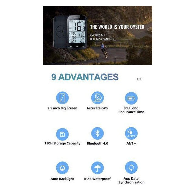 Cycplus M1 Wireless Cycling Computer Waterproof Bicycle Meter Bluetooth English Version GPS Cycling Computer English Ver