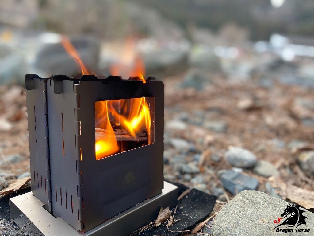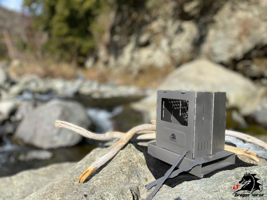 Titanium alloy firewood stove folding type collapsible alcohol stove camping outdoor DRAGON HORSE x BOUNDLESS VOYAGE Red Lotus