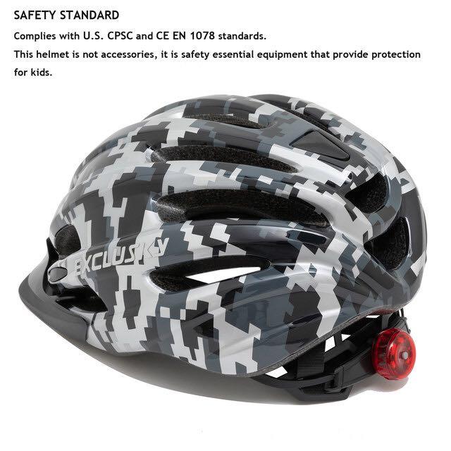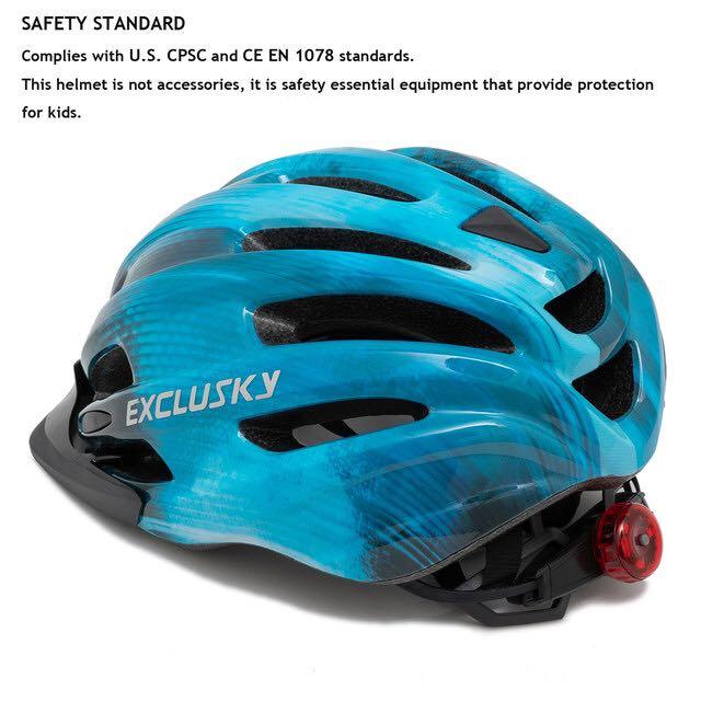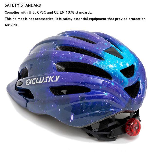 Exclusky youth bicycle helmet with tail light detachable sun protection gear