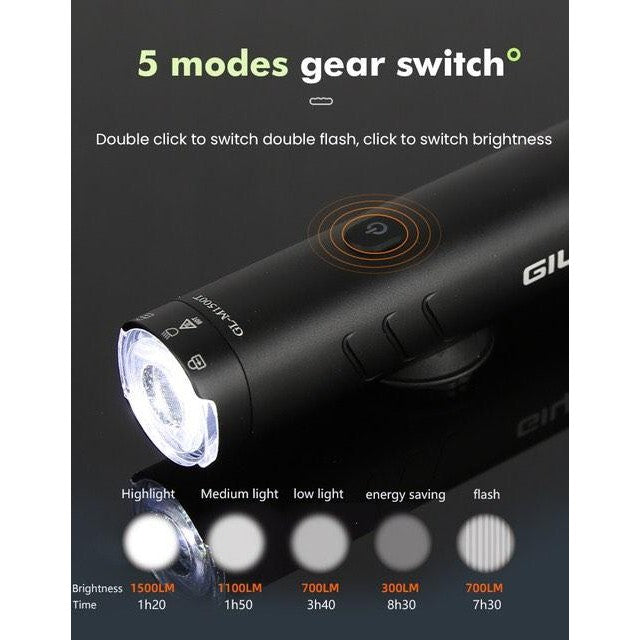 Giyo Bicycle Headlight 600 Lumens Ceiling/Formal Mounting Rotatable Lens Waterproof and Anti-glare Head Light 600 Lumen Anti-glare