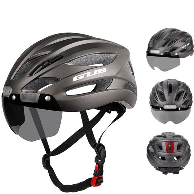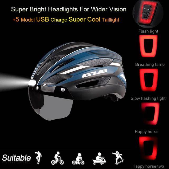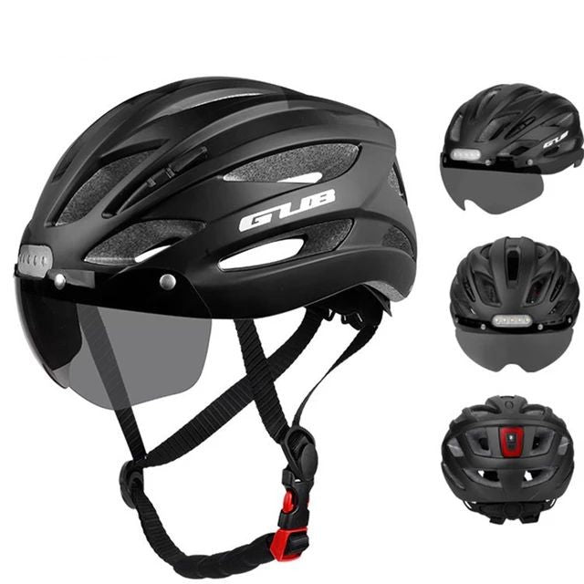 GUB K100 Plus Cycling/Road Helmet with Goggles Sun Gear Front and Rear Tail Lights