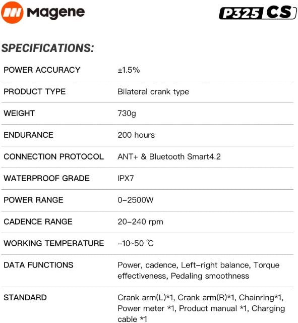 Magene P325CS Lite Crankset Rechargeable Power Meter