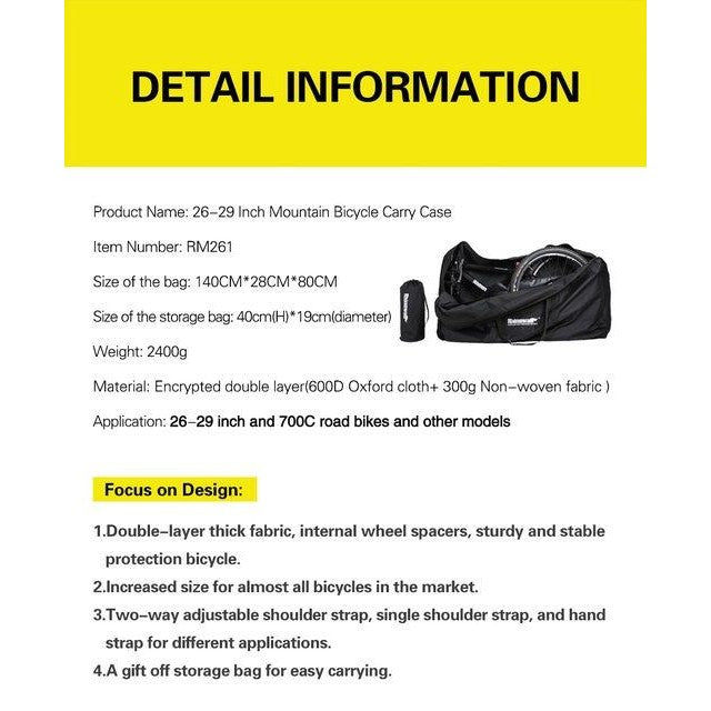 Rhinowalk mountain bike road bike storage bag large size large capacity 26” 27.5” 29”