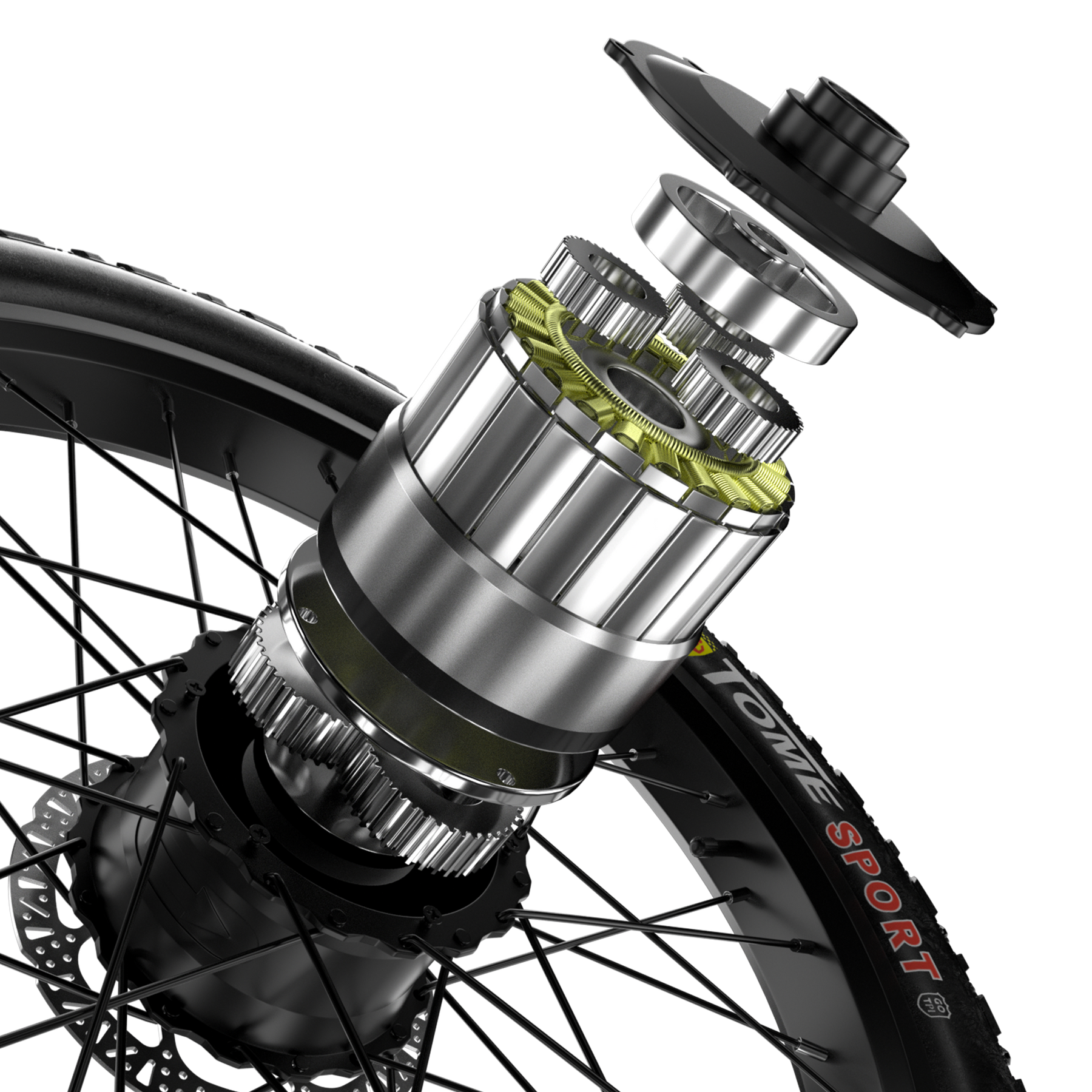 - 1000W peak power rear hub motor with 80 N·m torque and 35° climbing capability.