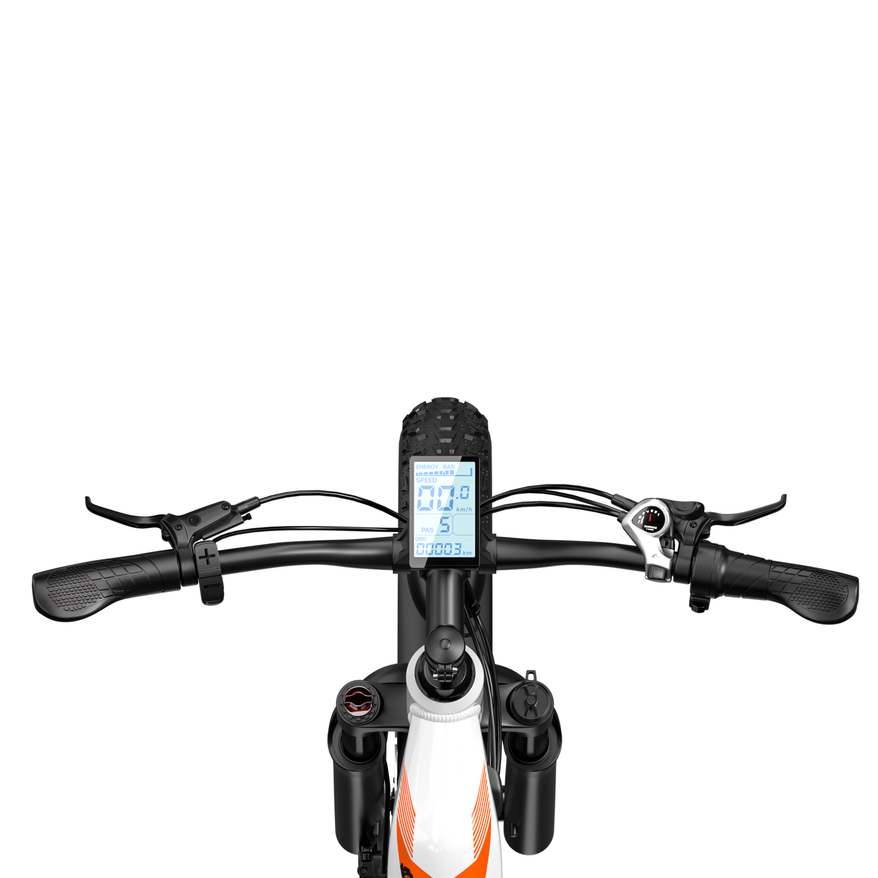26" x 3.0" mountain fat tires offer superior grip and traction on challenging terrains like snow, sand, or mountain trails.